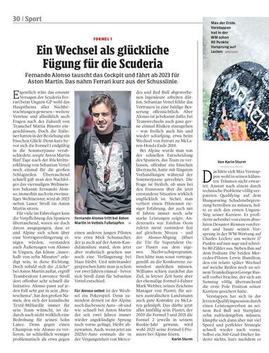 Fernando Alonso tauscht das Cockpit und fährt ab 2023 für Aston Martin. Das nahm Ferrari kurz aus der Schusslinie.