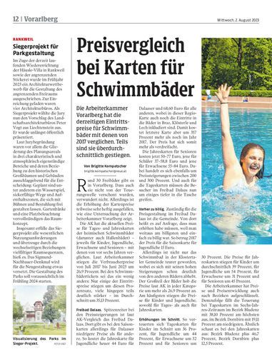 Die Arbeiterkammer Vorarlberg hat die derzeitigen Eintrittspreise für Schwimmbäder mit denen von 2017 verglichen. Teils sind sie überdurchschnittlich gestiegen.