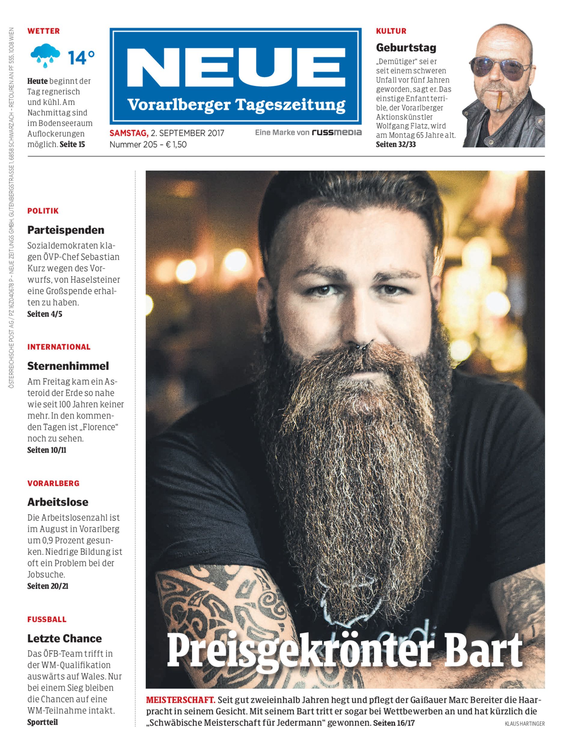 Der Gaißauer Marc Bereiter (35) hat kürzlich die „Schwäbische Bartmeisterschaft für Jedermann“ gewonnen. Die Haarpracht in seinem Gesicht hegt und pflegt er seit zweieinhalb Jahren.