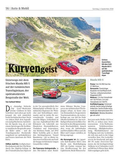 Unterwegs mit dem frischen Mazda MX-5 auf der rumänischen Transfăgărăşan, der spektakulärsten Bergstraße der Welt. Von Gerhard Nöhrer