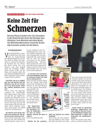 Bettina Plank trainiert mit vier Schrauben in der Hand für den Start der Olympia-Qualifikation. Zwei Wochen nach dem Bruch des Mittelhandknochens stand die 26-jährige Karateka wieder auf der Matte.