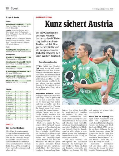 Vor 1400 Zuschauern besiegte Austria Lustenau den FC Liefering im Planet-Pure-Stadion mit 1:0. Eine gute erste Hälfte und ein ausgezeichneter Torhüter brachten den Grün-Weißen den Sieg.