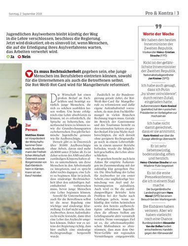 Es muss Rechtssicherheit gegeben sein, ehe junge Menschen ins Berufsleben eintreten können, sowohl für die Unternehmen als auch die Betroffenen selbst. Die Rot-Weiß-Rot-Card wird für Mangelberufe reformiert.
