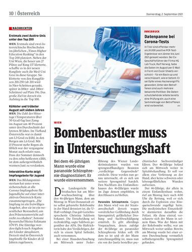 Bei dem 46-jährigen Mann wurde eine paranoide Schizophrenie diagnostiziert. Er wurde einvernommen.