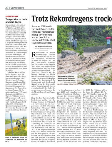 Sommer 2022 bestätigt laut Experten den Trend zur Klimaerwärmung. In Vorarlberg war es deutlich zu warm, auf Trockenheit folgte Rekordregen.