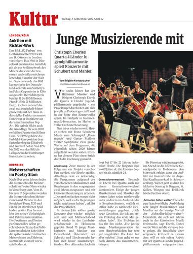 Christoph Eberles Quarta 4 Länder Jugendphilharmonie spielt Konzerte mit Schubert und Mahler.