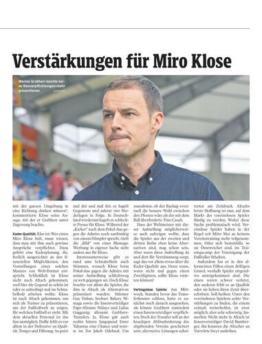 Am Mittwoch um 24 Uhr endete die Transferzeit. Tabellenschlusslicht Altach ist auf dem Transfermarkt nicht mehr fündig geworden. Damit bleibt vorerst der Wunsch von Startrainer Miroslav Klose nach Verstärkungen unerfüllt.