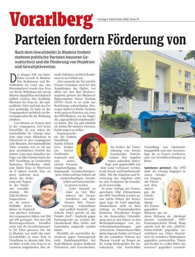 Nach dem Gewaltdelikt in Bludenz fordern mehrere politische Parteien besseren Gewaltschutz und die Förderung von Projekten und Gewaltprävention.