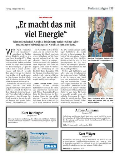 Wiener Erzbischof, Kardinal Schönborn, berichtet über seine