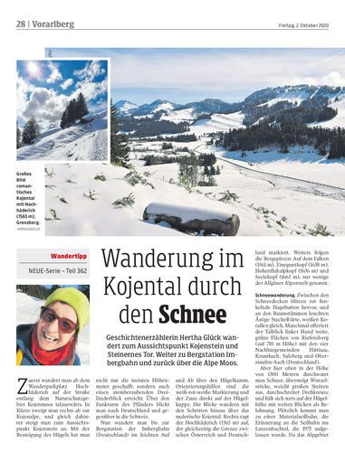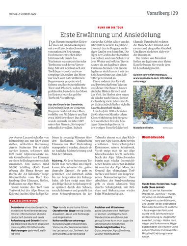 Geschichtenerzählerin Hertha Glück wandert zum Aussichtspunkt Kojenstein und Steinernes Tor. Weiter zu Bergstation Imbergbahn und zurück über die Alpe Moos.