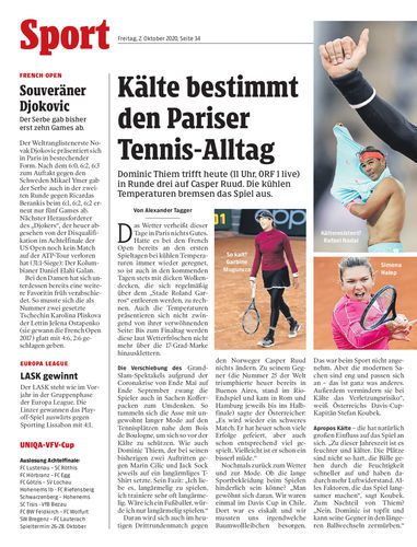 Dominic Thiem trifft heute (11 Uhr, ORF 1 live) in Runde drei auf Casper Ruud. Die kühlen Temperaturen bremsen das Spiel aus.