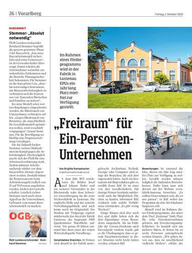 Im Rahmen eines Förderprogramms wird in der Fabrik in Lustenau EPUs ein Jahr lang Platz mietfrei zur Verfügung gestellt.