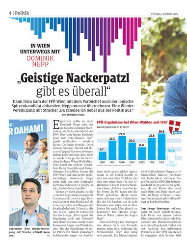 Dank Ibiza kam der FPÖ Wien mit dem Parteichef auch der logische Spitzenkandidat abhanden, Nepp musste übernehmen. Eine Wiedervereinigung mit Strache? „Da scheide ich lieber aus der Politik aus.“ Von Christina Traar