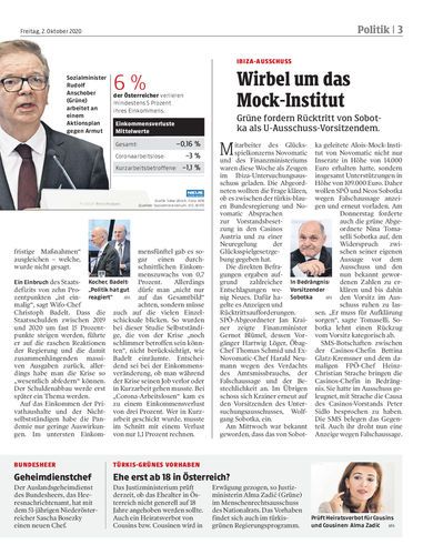 Grüne fordern Rücktritt von Sobotka als U-Ausschuss-Vorsitzendem.