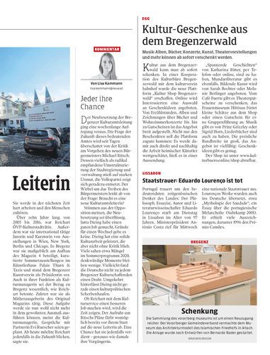 Bregenzer Kulturamt wird zum Kulturservice. Reichart wird ihre Arbeit schon heute aufnehmen.