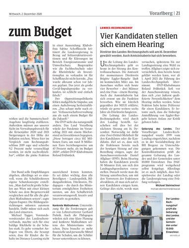 Direktor des Landes-Rechnungshofs soll am 16. Dezember gewählt werden. Auch Amtsinhaberin hat sich beworben.