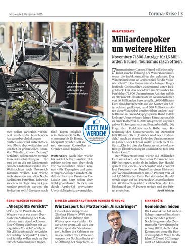 November: 71.800 Anträge für 1,6 Milliarden. Blümel: Tourismus rasch öffnen.