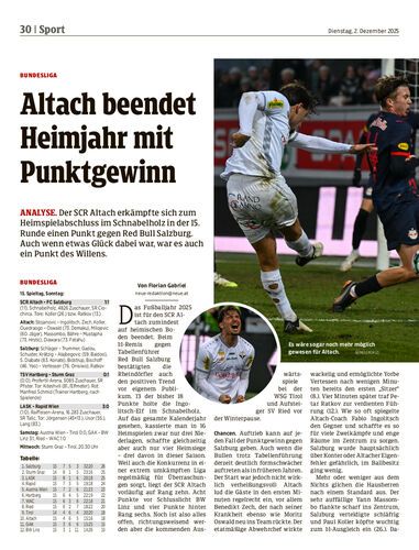 Analyse. Der SCR Altach erkämpfte sich zum Heimspielabschluss im Schnabelholz in der 15. Runde einen Punkt gegen Red Bull Salzburg. Auch wenn etwas Glück dabei war, war es auch ein Punkt des Willens.