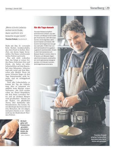 Der erste Drei-Hauben-Koch am Arlberg, Thorsten Probost, hat im Laufe seiner Küchenkarriere eine eigene Philosophie entwickelt. Lebensmittel sollten von hier kommen und dem Kreislauf der Natur entsprechen.