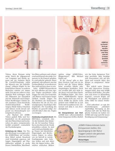 Weltweit „boomt“ eine Form von Videos, in denen mit Flüstern, Essen, Kratzen eine sanfte Geräuschkulisse produziert wird. Für manch einen mutet dies bizarr an. Für viele dienen die sogenannten ASMR-Videos zur Entspannung.
