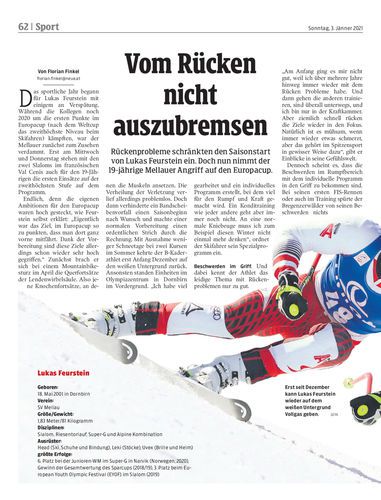 Rückenprobleme schränkten den Saisonstart von Lukas Feurstein ein. Doch nun nimmt der 19-jährige Mellauer Angriff auf den Europacup.