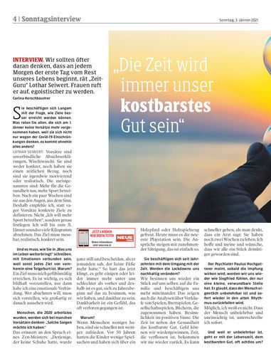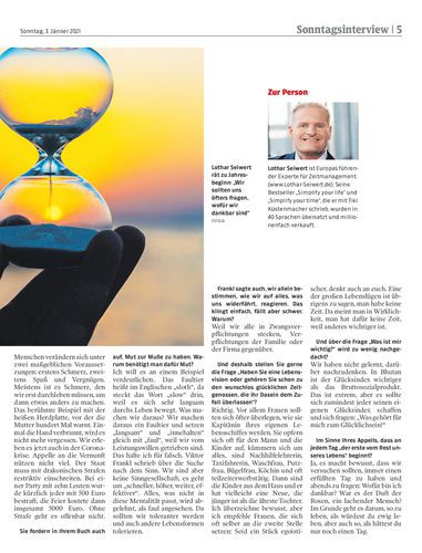 Wir sollten öfter daran denken, dass an jedem Morgen der erste Tag vom Rest unseres Lebens beginnt, rät „Zeit-Guru“ Lothar Seiwert. Frauen ruft er auf, egoistischer zu werden. Carina Kerschbaumer