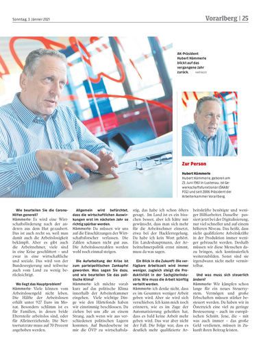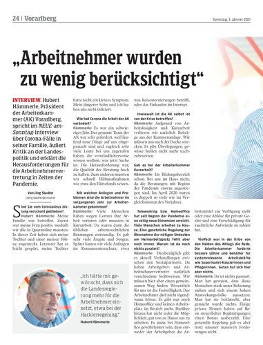 Interview. Hubert Hämmerle, Präsident der Arbeiterkammer (AK) Vorarlberg, spricht im NEUE-am-Sonntag-Interview über Corona-Fälle in seiner Familie, äußert Kritik an der Landespolitik und erklärt die Herausforderungen für die Arbeitnehmervertretung in Zeiten der Pandemie.