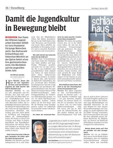 Interview. Das Team der Offenen Jugendarbeit Dornbirn (OJAD) ist trotz Pandemie für junge Menschen aktiv. Das Kulturcafé Schlachthaus mit Sebastian Mischitz an der Spitze liefert etwa live gestreamte Konzerte. Ein Rückblick auf ein ungewöhnliches Jahr.