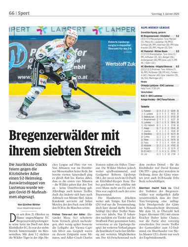 Die Juurikkala-Cracks feiern gegen die Kitzbüheler Adler einen 5:2-Heimsieg. Auswärtsdoppel von Lustenau wurde wegen Covid-19-Maßnahmen abgesagt.