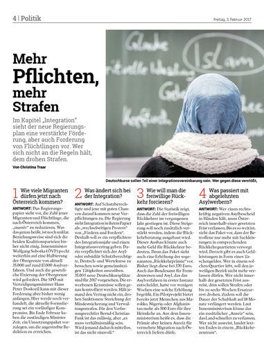 Im Kapitel „Integration“ sieht der neue Regierungsplan eine verstärkte Förderung, aber auch Forderung von Flüchtlingen vor. Wer sich nicht an die Regeln hält, dem drohen Strafen. Von Christina Traar