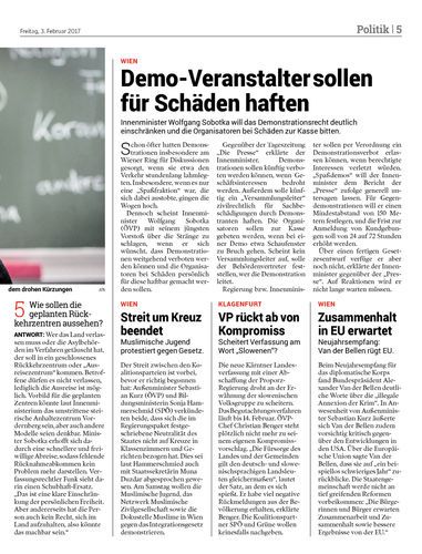 Innenminister Wolfgang Sobotka will das Demonstrationsrecht deutlich einschränken und die Organisatoren bei Schäden zur Kasse bitten.
