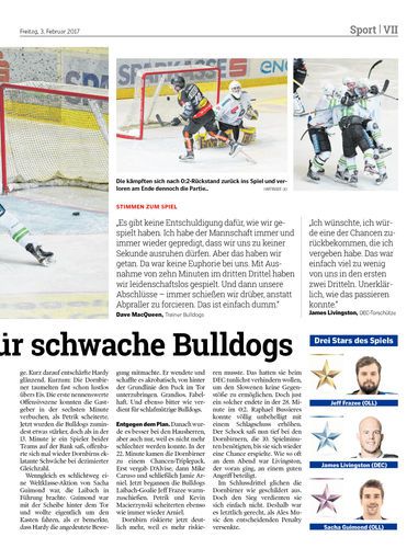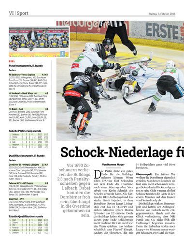 Vor 1690 Zuschauern verlieren die Bulldogs 2:3 nach Penaltyschießen gegen Laibach. Dabei konnten die Dornbirner froh sein, überhaupt in die Overtime gekommen zu sein.
