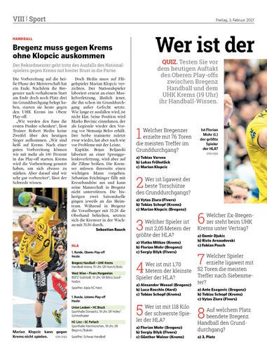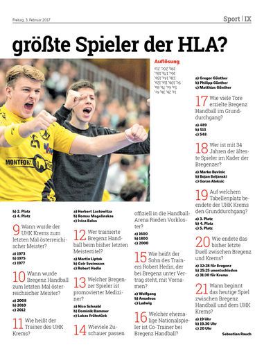Quiz. Testen Sie vor dem heutigen Auftakt des Oberen Play-offs zwischen Bregenz Handball und dem UHK Krems (19 Uhr) ihr Handball-Wissen.