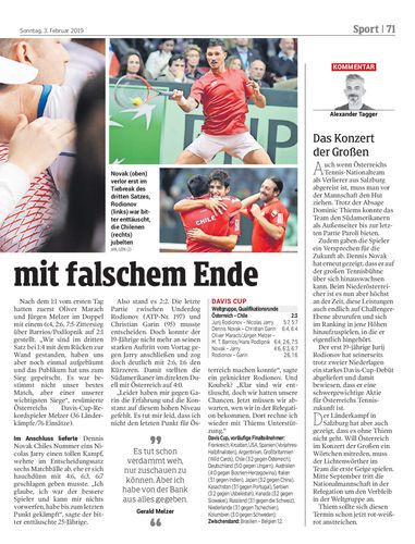 Österreich hat als Außenseiter im Davis Cup gegen Chile 2:3 verloren. Im September geht es in die Weltgruppen-Relegation.