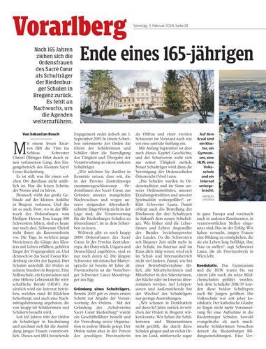 Nach 165 Jahren ziehen sich die Ordensfrauen des Sacré Cœur als Schulträger der Riedenburger Schulen in Bregenz zurück. Es fehlt an Nachwuchs, um die Agenden weiterzuführen.