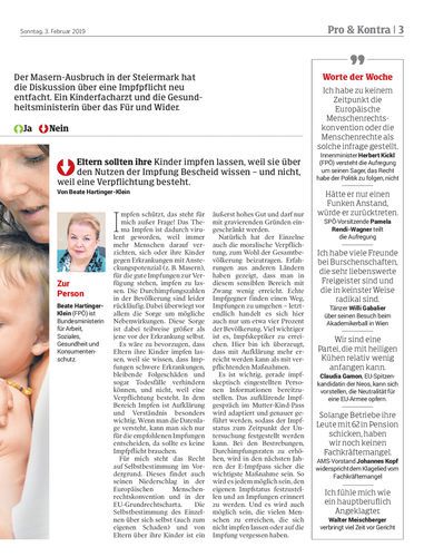 Eltern sollten ihre Kinder impfen lassen, weil sie über den Nutzen der Impfung Bescheid wissen – und nicht, weil eine Verpflichtung besteht. Von Beate Hartinger-Klein