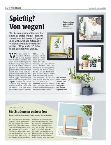 Wer keinen grünen Daumen hat, sollte es trotzdem mit Pflanzen versuchen: Kakteen sind geduldige Mitbewohner. Alternativ bringen auch Retro-Pflanzen- poster „pflegeleichtes“ Grün in die eigenen vier Wände.