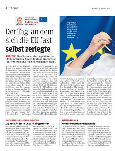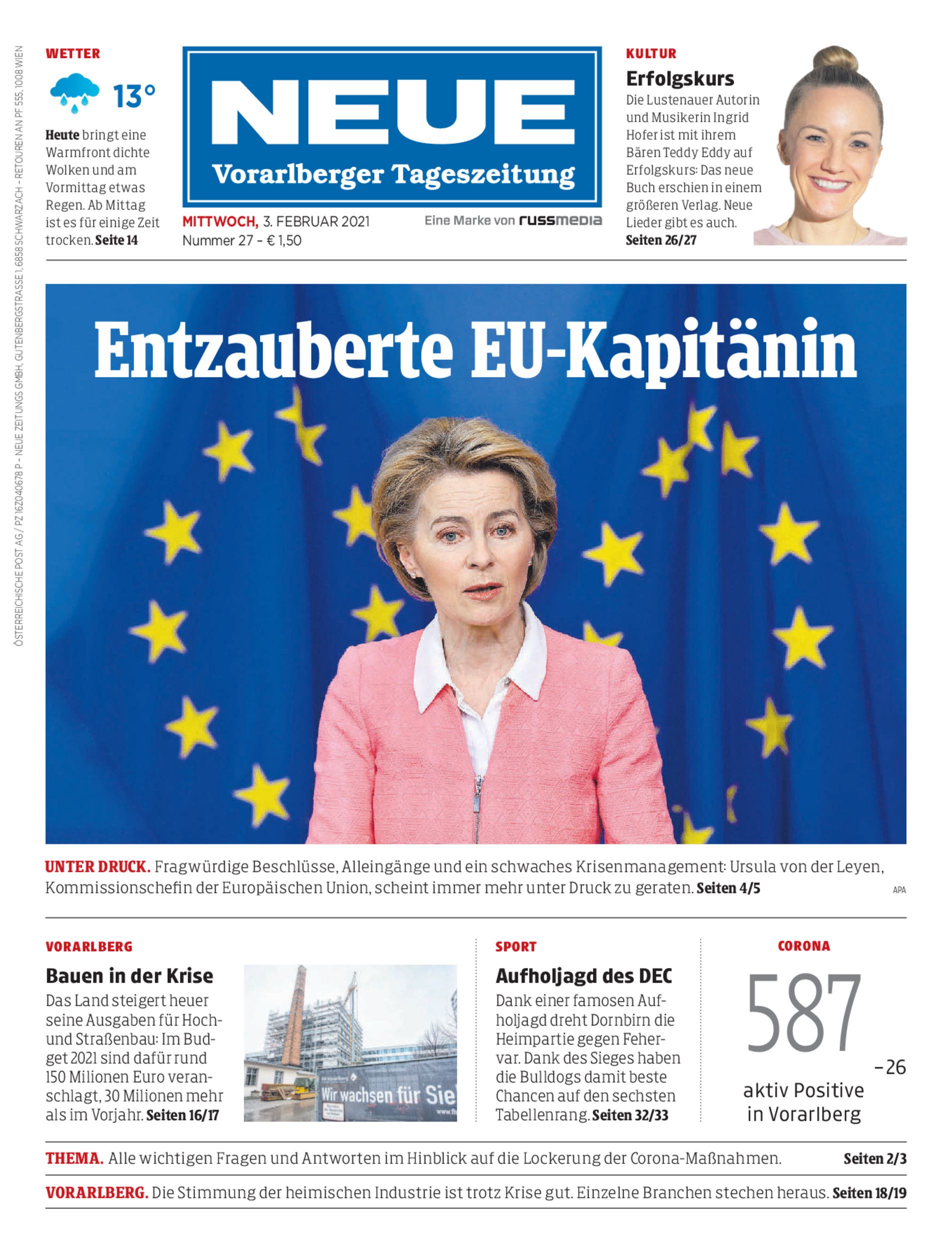 Unter Druck. Fragwürdige Beschlüsse, Alleingänge und ein schwaches Krisenmanagement: Ursula von der Leyen, Kommissionschefin der Europäischen Union, scheint immer mehr unter Druck zu geraten. Seiten 4/5 APA