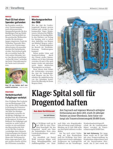 Am Tag nach auf eigenen Wunsch erfolgter Entlassung aus dem LKH, starb 24-jähriger Patient an einer Überdosis. Sein Vater verlangt als Trauerschmerzengeld 20.000 Euro.
