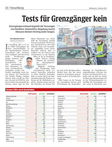 Grenzgängerverband begrüßt die Testungen von Pendlern. Homeoffice-Regelung macht Obmann Herbert Fechtig mehr Sorgen.