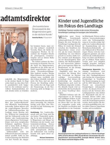 Vielfältige Themen werden in der ersten Sitzung des Vorarlberger Landtags im heurigen Jahr behandelt.