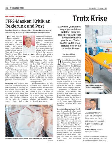 Das vierte Quartal des vergangenen Jahres fällt laut einer Umfrage der Vorarlberger Industrie deutlich positiv aus. Testen, Impfen und Digitalisierung bleiben die zentralen Themen.