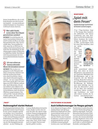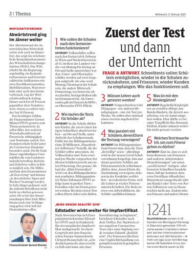 Die Schulen werden wieder geöffnet – für all jene, die sich zweimal wöchentlich testen lassen. Das ist im Sinne der Kinder und Jugendlichen und ein wirklich geringes Übel.