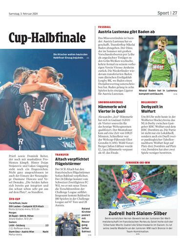Der SCR Altach gastiert heute um 19.15 Uhr im ÖFB-Cup-Viertelfinale beim DSV Leoben. Die Altacher können dabei erstmals in der Vereinsgeschichte ins ÖFB-Cup-Halbfinale einziehen.