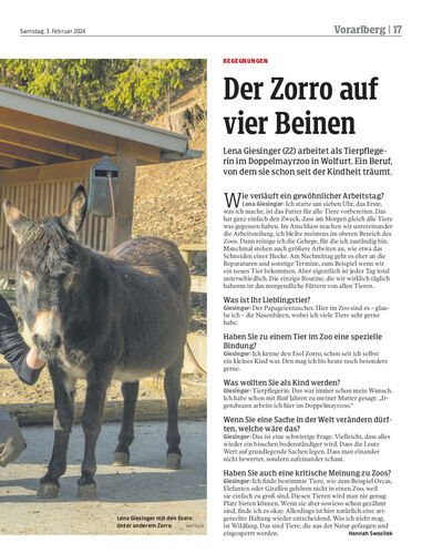 Lena Giesinger (22) arbeitet als Tierpflegerin im Doppelmayrzoo in Wolfurt. Ein Beruf, von dem sie schon seit der Kindheit träumt.