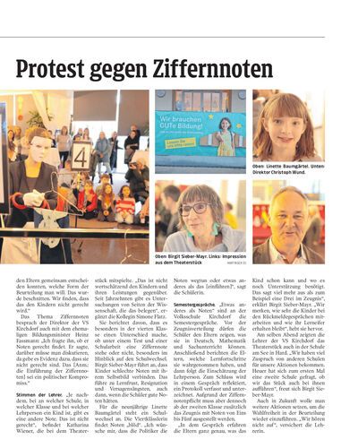 An der Volksschule Kirchdorf in Lustenau setzen sich Lehrer und Direktor pünktlich zur Zeugnisverteilung erneut für die Wahlfreiheit in der Benotung ihrer Schüler ein.
