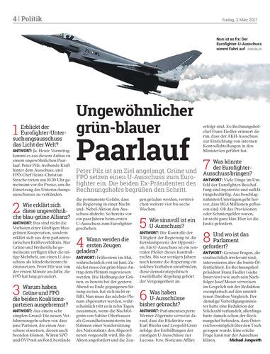 Peter Pilz ist am Ziel angelangt. Grüne und FPÖ setzen einen U-Ausschuss zum Eurofighter ein. Die beiden Ex-Präsidenten des Rechnungshofes begrüßen den Schritt.