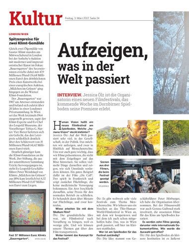 Interview. Jessica Ölz ist die Organisatorin eines neuen Filmfestivals, das kommende Woche im Dornbirner Spielboden seine Premiere erlebt.