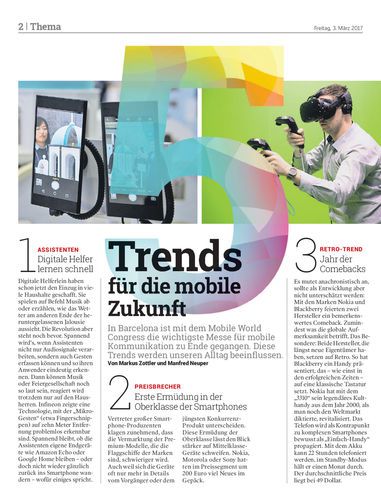 In Barcelona ist mit dem Mobile World Congress die wichtigste Messe für mobile Kommunikation zu Ende gegangen. Diese Trends werden unseren Alltag beeinflussen. Von Markus Zottler und Manfred Neuper