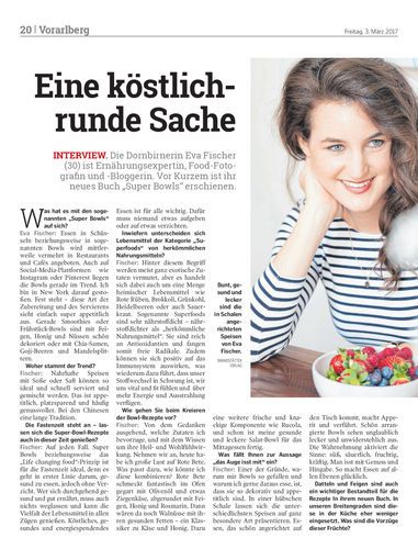 Interview. Die Dornbirnerin Eva Fischer (30) ist Ernährungsexpertin, Food-Fotografin und -Bloggerin. Vor Kurzem ist ihr neues Buch „Super Bowls“ erschienen.